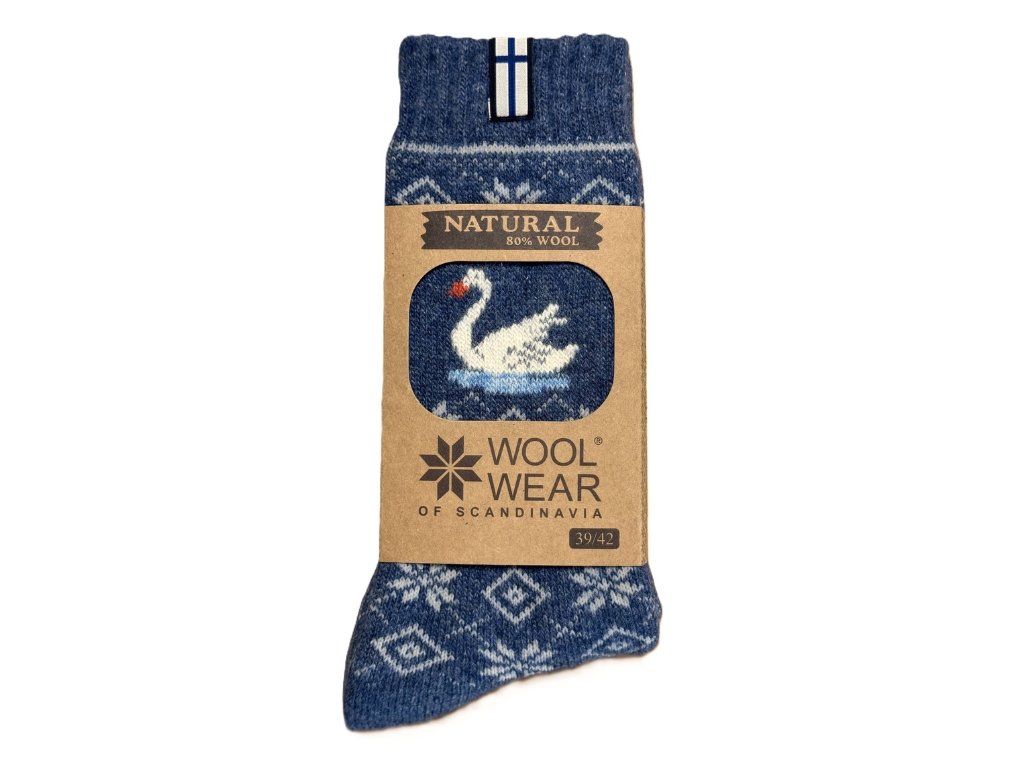 Vlněné ponožky s labutí a finskou vlajkou - modrá