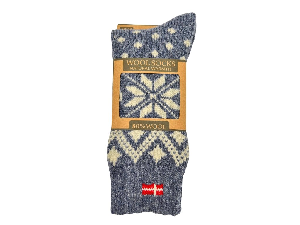 Měkké a pevné vlněné ponožky vyrobené z 80% vlny s malou pletenou dánskou vlajkou od WOOLWEAR of Scandinavia®.